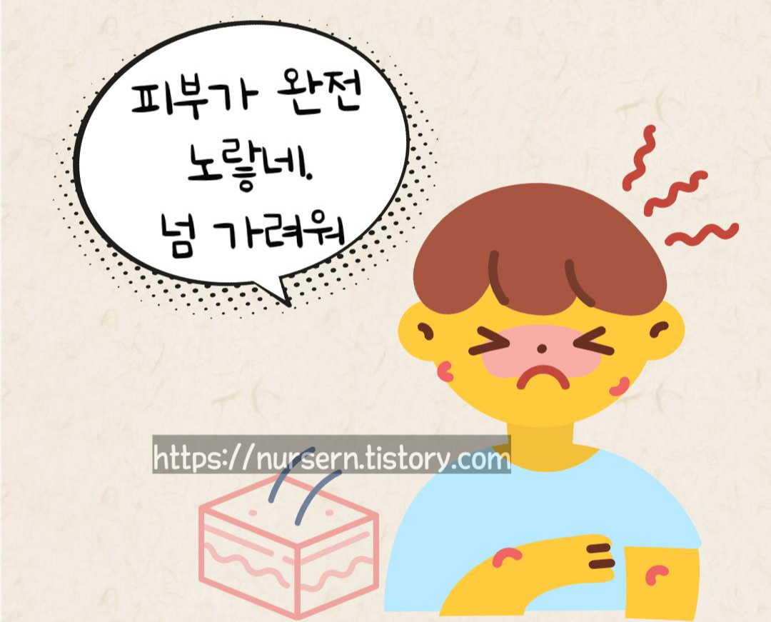 그래서 ‘피부손상위험성’ 간호진단을 내려주고 손상이 되지 않도록 중재를 잘해주는 게 좋겠죠?