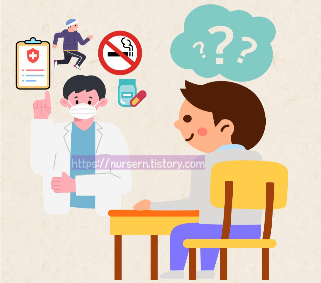 질병을 진단받은 분께는 질병의 원인, 치료법과 관리법 등에 대한 정보를 교육해야 합니다.