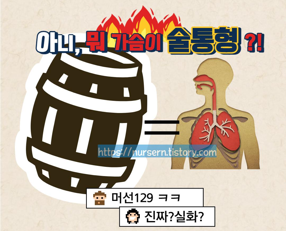 안녕하세요 널스프렌드입니다. 제가 이번 글에서 별거 아니지만 아리송할 수 있는 단어 '술통형흉곽'의 의미와, 왜 그렇게 부르게 됐는지 알려드릴게요. ‘술통형 흉곽’이라는 단어는 ‘만성