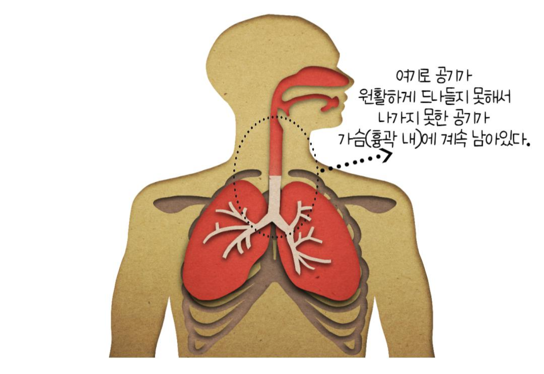 한마디로 숨 쉬고 내쉬는 호흡 자체가 어려워집니다.