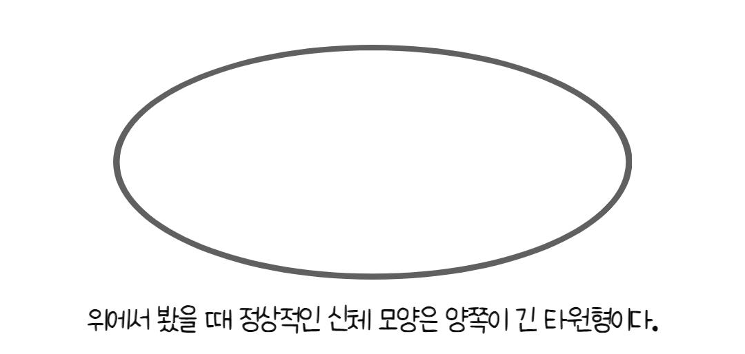 보통 우리 정상적인 가슴은 원통처럼 동그랗지 않죠? 납작한 타원형? 에 가까운 모양입니다.