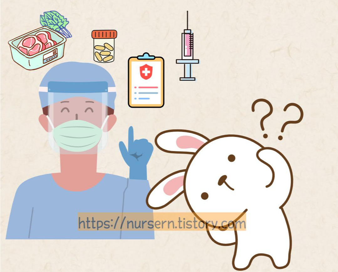 기서 관련 간호진단은 ‘설사’, ‘영양부족(위험성)’, ‘변비’ 등이 있을 수 있답니다.
