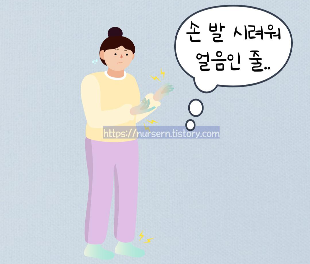 이건 한마디로 손끝 발끝 말초 부위에 순환이 잘 안 되는 것을 말해요.