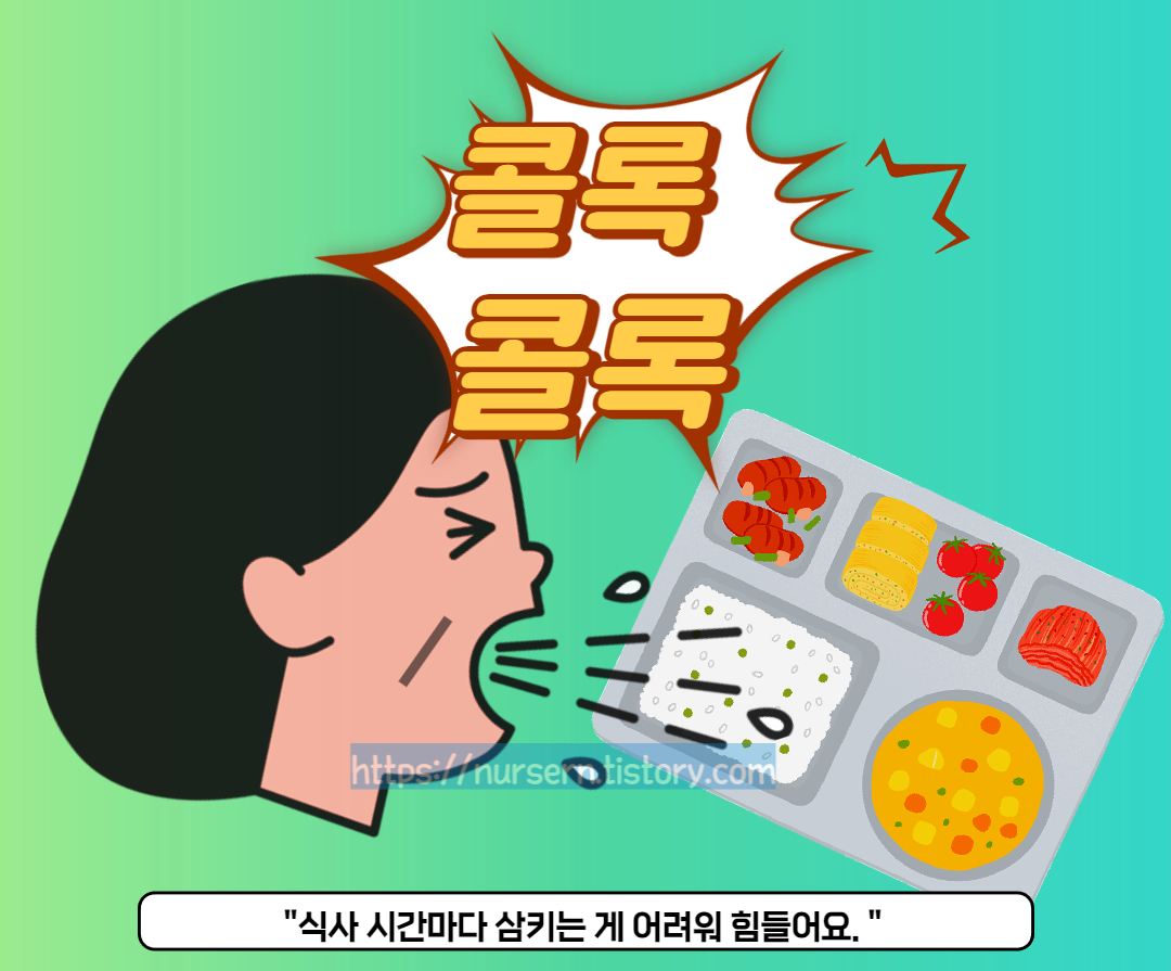 또 잘못하면 흡인성 폐렴, 질식 등 심각한 합병증이 생길 수도 있어서 미연에 이런 일이 생기지 않도록 꼭 적절한 치료와 중재가 필요해요.