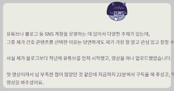 | 저는 간호 콘텐츠 크리에이터입니다. (0) | 2022.01.21 |