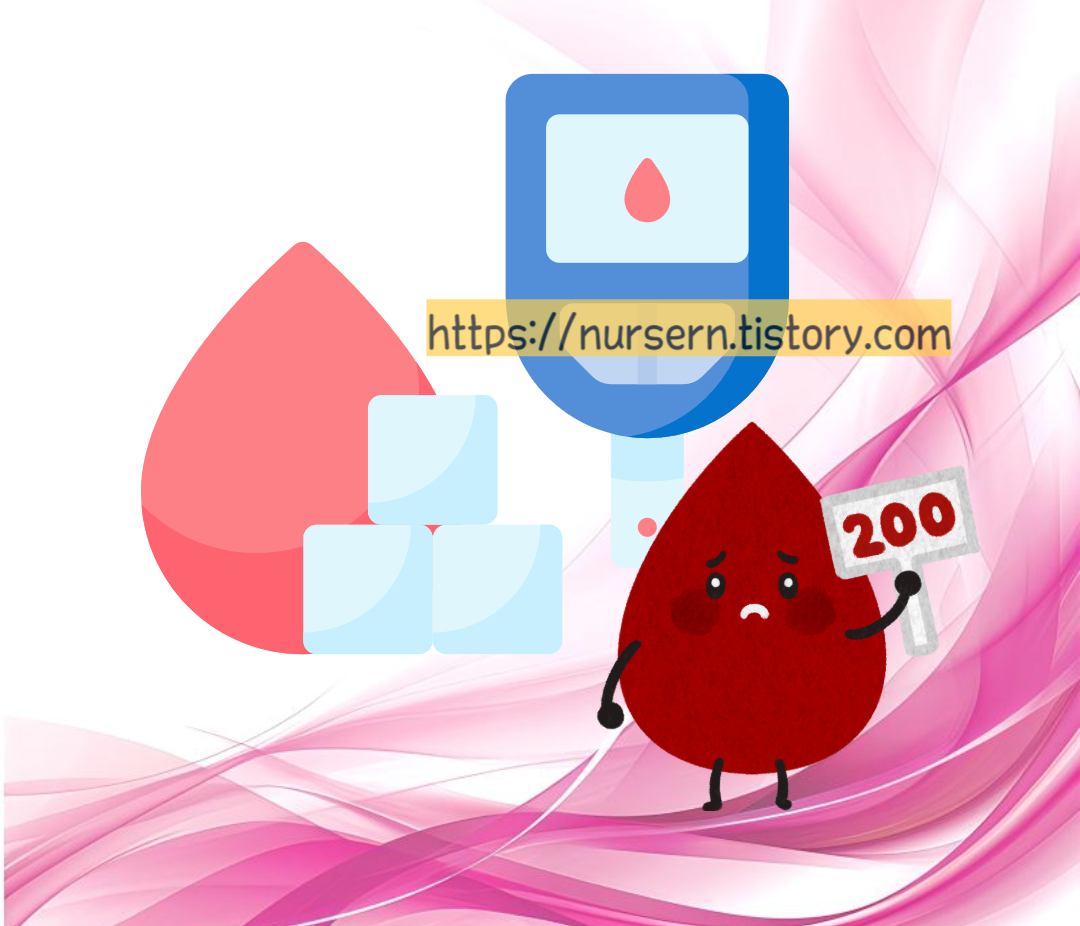 그래서 식이요법, 운동요법, 약물요법 등 여러 가지 중재로 혈당을 조절해주어야 하는데, 이게 제대로 안 되면 혈당이 불안정하게 되므로 ‘불안정한 혈당치 위험성’은 당뇨 환자에게 정말 딱 맞는 간호진단이에요.