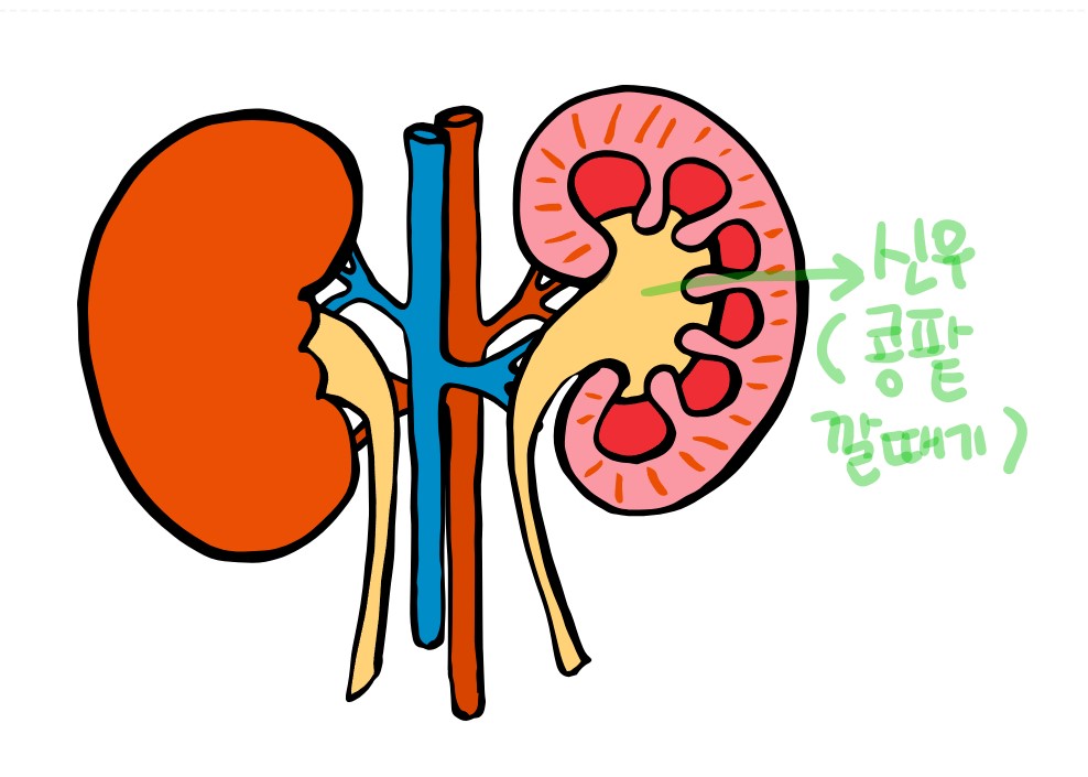 급성신우신염은 다른 말로 ‘콩팥 깔때기염’이라고도 해요. 신우는 신장과 요관 사이의 연결 부위로, 신우가 깔때기 모양으로 신장에 붙어 있어서 이런 이름도 있는 거랍니다.